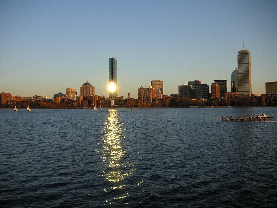 ボストンのシンボル、ハンコック・タワーとチャールズ川の光景