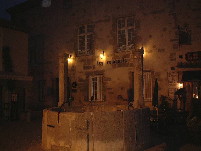 城壁を出て、坂道を下り、城下町に出る。城下の橋からは、ライトアップされた城塞都市の全景を見渡すことができる。