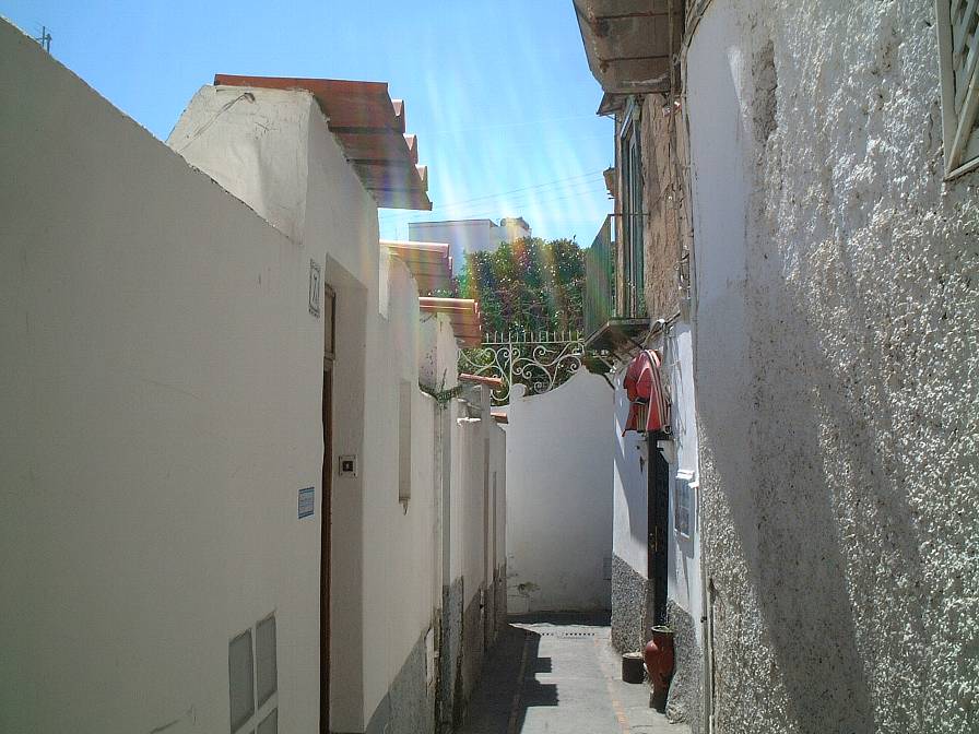 カプリ島の民家の間の狭い路地。白い壁の建物が地中海の島々の特徴。