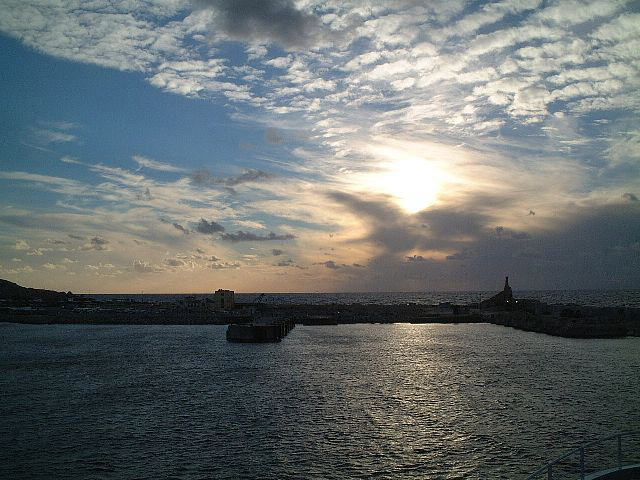 ゴゾ島は本島から日帰りで観光するのに丁度よい大きさである。日が暮れる頃のフェリーの帰り路もまた美しい。