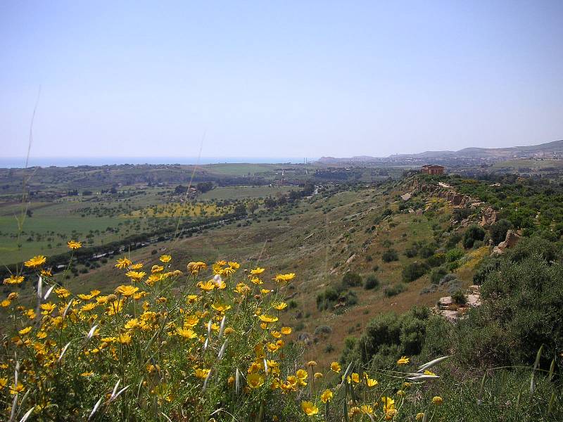 神殿の谷の向こうには、地中海が広がる。