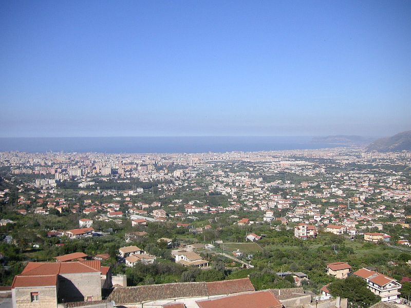 パレルモの空港で飛行機から降りた瞬間、南国に来たことを一挙に実感する。汗ばむほどの暖かさもさることながら、強烈な日差しで、周囲が光に包まれたように眩しい。空港の向こうには小高い岩山が見える。イギリスではありえない光景だ。そして何より、抜けるように青い空。イギリスではごく稀にしか見ないような、雲ひとつない快晴が、惜しげもなく続く。空港から市内への道の脇にはヤシの木が並び、そしてその奥には、アクアマリーンの地中海が広がっている。