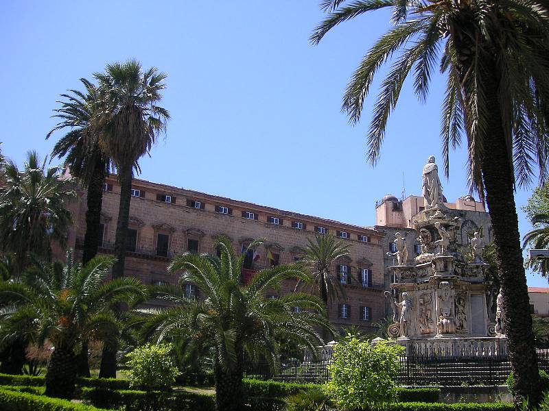 パレルモの旧市街は、古ぼけた建物、狭い路地、干された洗濯物という、典型的な地中海岸の下町風景だ。こうした市街を通って「王宮」(Parazzo Reale)へと向かう。