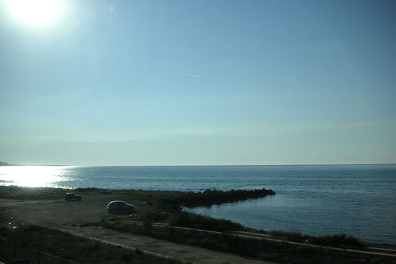 海岸沿いを走る列車の窓から
